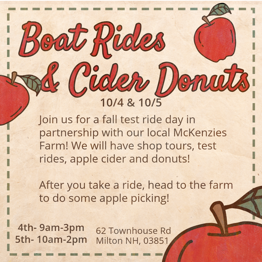 This fall we will not be attending the Annapolis boat show, but we will be hosting another test ride event 10/4 & 10/5! We will have factory tours and test rides on Friday and test rides on Saturday. This event will be in partnership with our local Mckenzies Farm, offering apple cider and cider donuts! Time slots for rides are first come first serve, contact a salesperson or email haley@Aquaticboats for more information.