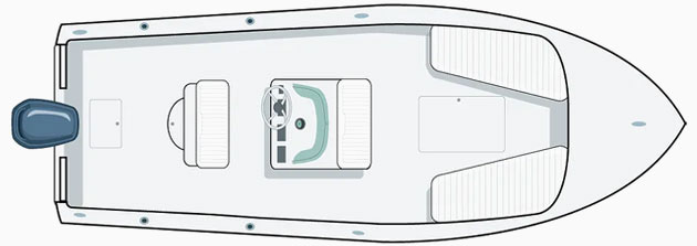 The 248 Center Console offers comfortable seating with classic striped cushions. A folding bow dodger protects people sitting forward, while a hard T-top protects the skipper and companion. The 37-inch-wide console holds a changing room with portable toilet and adult-sized headroom.