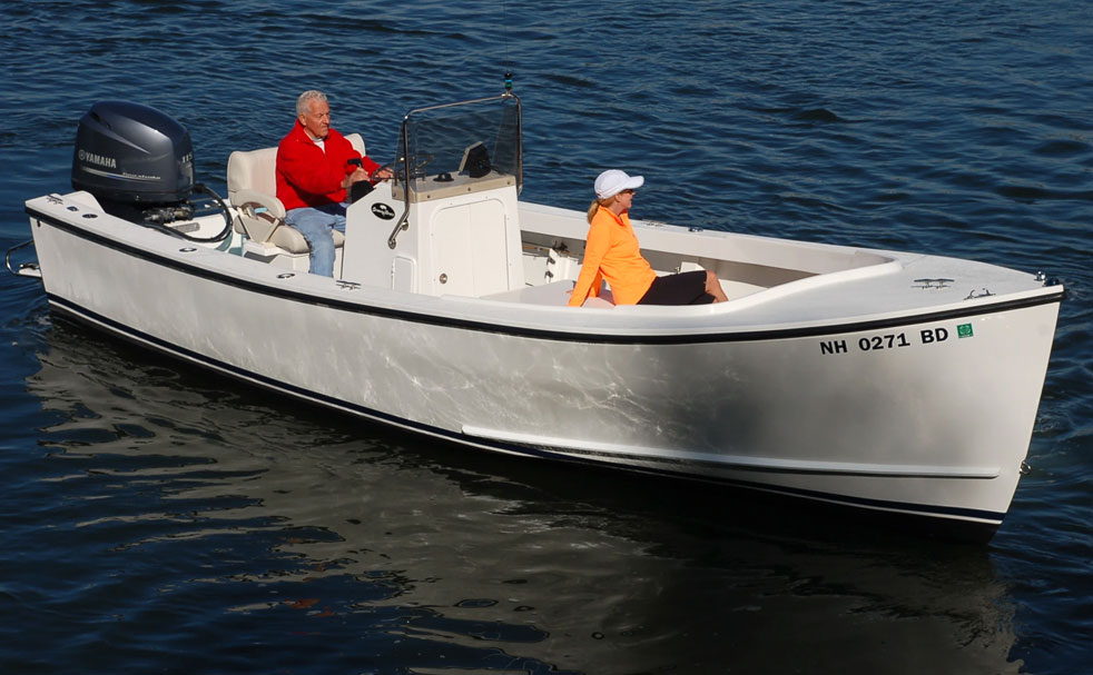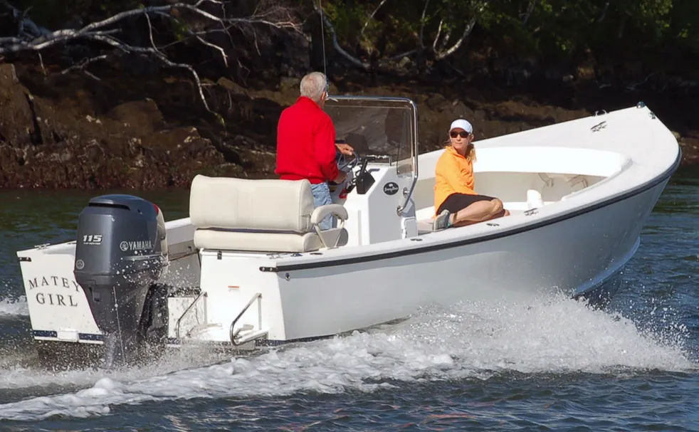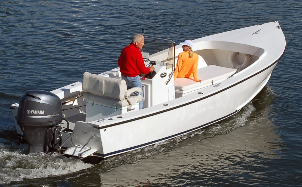 Seaway’s 24 Sport Center Console reflects the classic Yankee values of New England’s waterfront: lovely in a form-follows-function way. She’s a big open skiff that can take a lot of sea, and amazingly she performs well with as little as 115 horsepower. With that engine, expect a top speed of 30 knots, with efficient cruise over a broad range from 12 to 23 knots. With a 150 hp, top end was 33 knots in our sea trial, with efficient cruise to 25 knots. 150hp is a good choice for hosting large groups aboard, carrying a lot of gear, and towing tubes and skis.