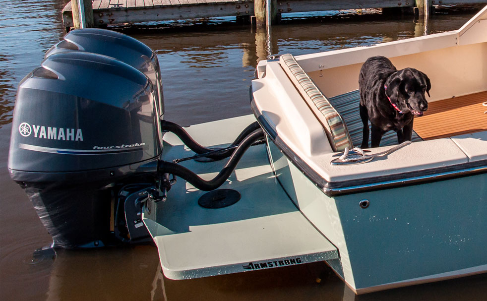 The rear upholstered transom molded bench seat with standard transom door and open deck makes this boat great for cruising, fishing or anything in between. Helpful options like an anchor windlass and a bow thruster can ease your day on the water.